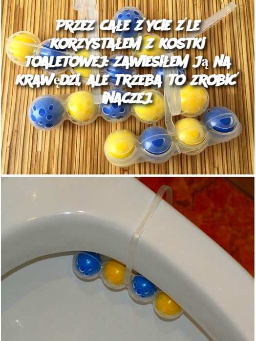Przez całe życie źle korzystałem z kostki toaletowej: zawiesiłem ją na krawędzi, ale trzeba to zrobić inaczej.